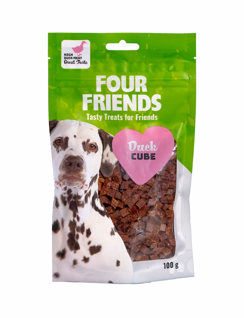 Belönings- och träningsgodis av superkvalitet. FourFriends Duck Cube är perfekt godis för träning och belöning. Små och mjuka bitar som hunden älskar. Förpackningen går att återsluta så att bitarna håller sig fräscha till nästa gång.