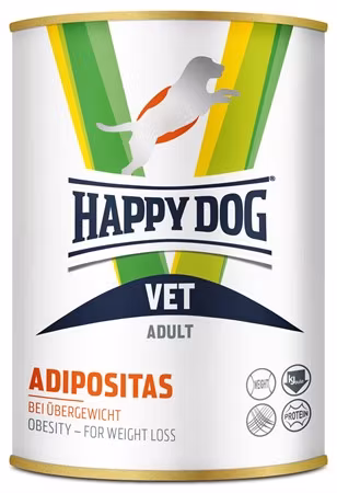 Happy Dog VET Diet Adipositas används för att minska övervikt. Den viktigaste egenskapen hos detta dietfoder är den kraftigt minskade energinivån. Det är rikt på högkvalitativt protein och mättande kost-fibrer. Det specialframtagna receptet skapar optimala förutsättningarna för viktminskning för att skydda de inre organen och bidrar till att upprätthålla och förbättra den fysiska formen. Värdefulla näringsämnen såsom hydrolyserat kollagen och glukosamin kompletterar receptet.